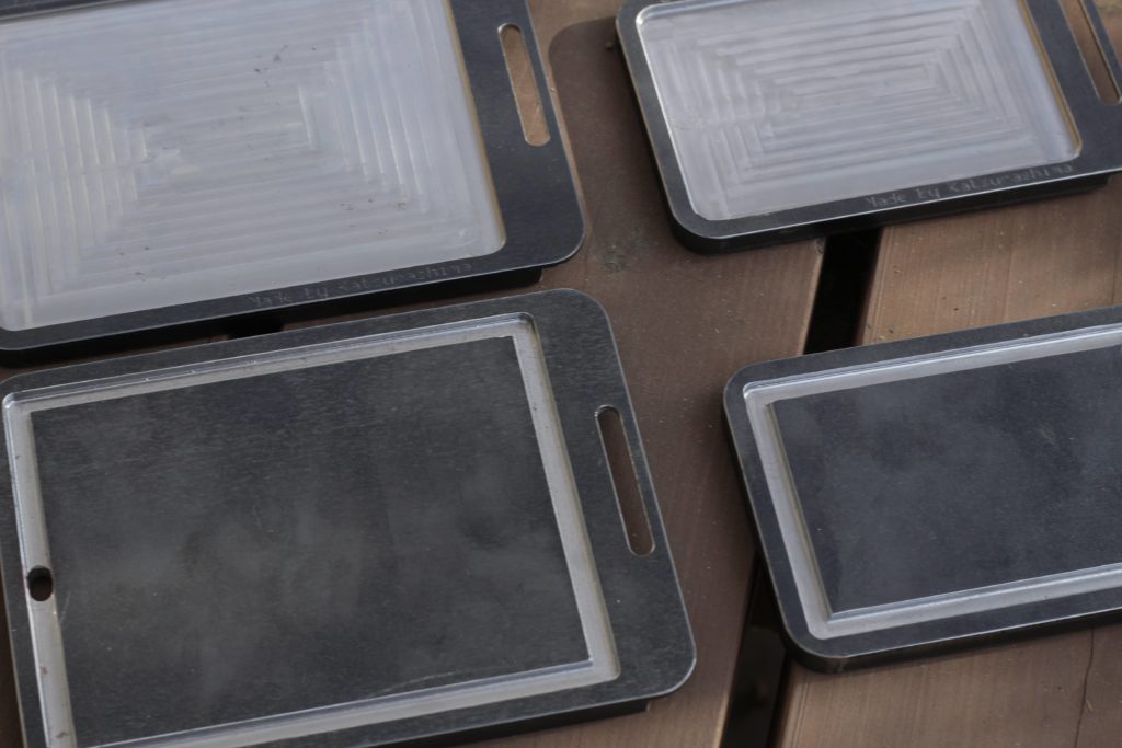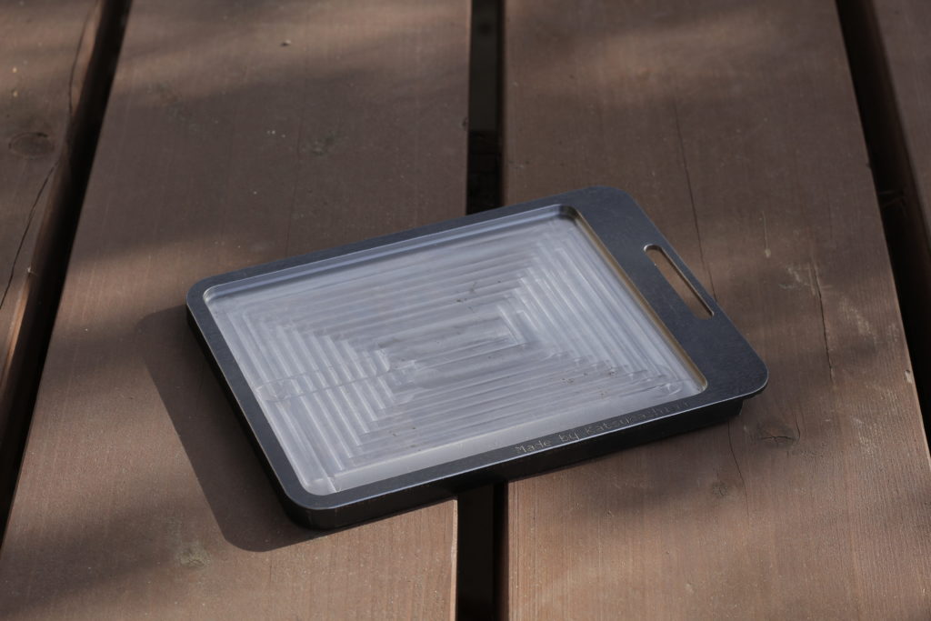 焼き面は削り出し加工にし、お手入れを簡単にする為に溝淵に丸みをつけてカスか溜まっても洗いやすい様に仕上げてあります。