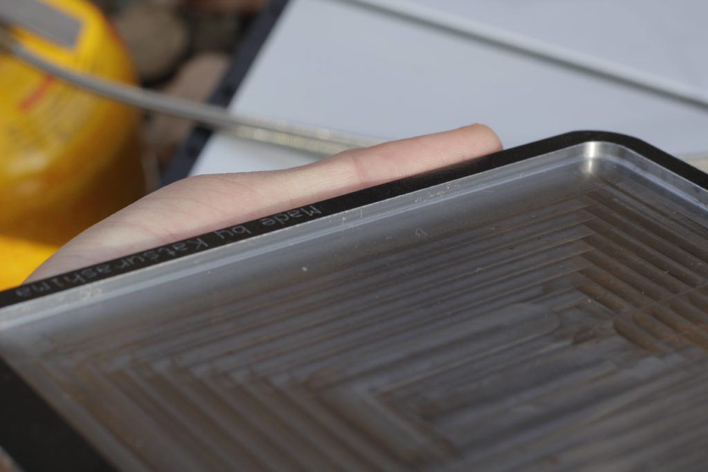 焼き面はフラットな状態で、油が流れるように幅6㎜の溝加工に仕上げています。